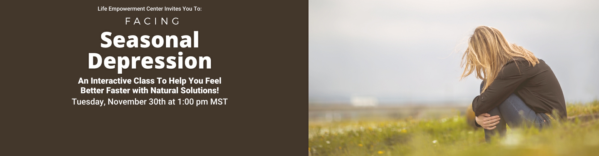 Join me for an enlightening Facebook class, Facing Seasonal Depression, on Tuesday, November 30th at 1:00 pm MST.